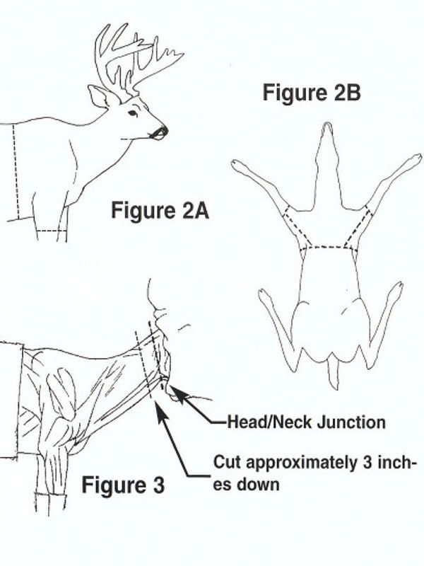 For all life size mounts I prefer you to skin up the back and up the back of the legs from the elbows down. I prefer the hunter brings the animals in for me to skin, but I know that can't always be the case.